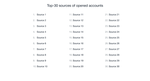 • Anda boleh mengesan statistik umum pada akaun yang didaftarkan, menentukan bulan yang membuahkan hasil, menandakan kemerosotan dalam aktiviti rujukan, atau mencari sebab untuk mencari strategi pemasaran baharu yang lebih cekap.