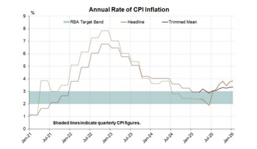 После публикации квартального отчета по инфляции на прошлой неделе, показавшего устойчивый рост цен в Австралии, вышел еще ряд показателей, которые в целом поддерживают дальнейший рост цен. В 4 квартале выросли частные капитальные расходы на 0.4% (ожидался нулевой рост), индикатор инфляции от института Мельбурна за февраль показал 3.6%г/г, что равно январскому уровню и как минимум сигнализирует об отсутствии дезинфляционных процессов, февральский ценовой индекс на сырье вырос на 3.4% г/г против 2.8% месяцем ранее. Добавим сюда очевидные опасения относительно общего